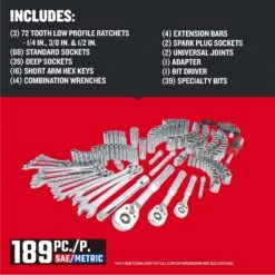Be the first to review “Craftsman 1/4, 3/8 And 1/2 In. Drive Metric And SAE 6 And 12 Point Mechanic’s Tool Set 189 Pc” Cancel reply