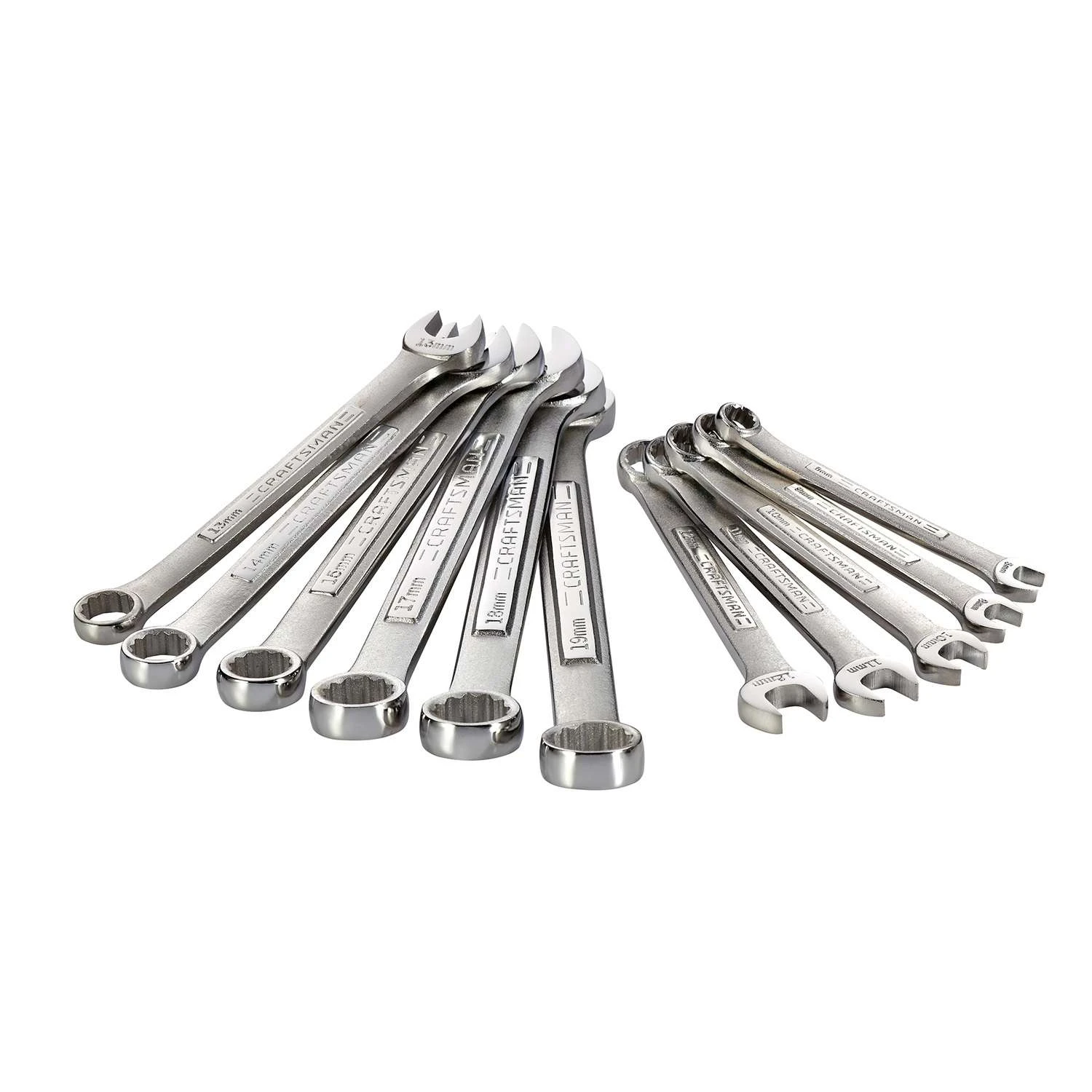Craftsman 11 pc. Metric Wrench Set offers a number of applications from the standard bolt turning to working on specific automotive repairs.CORROSION RESISTANCE: Full Polish Chrome FinishQUICK ENGAGEMENT: 12 Point Box End with fastenerQUICK SIZE IDENTIFICATION: Large Markings