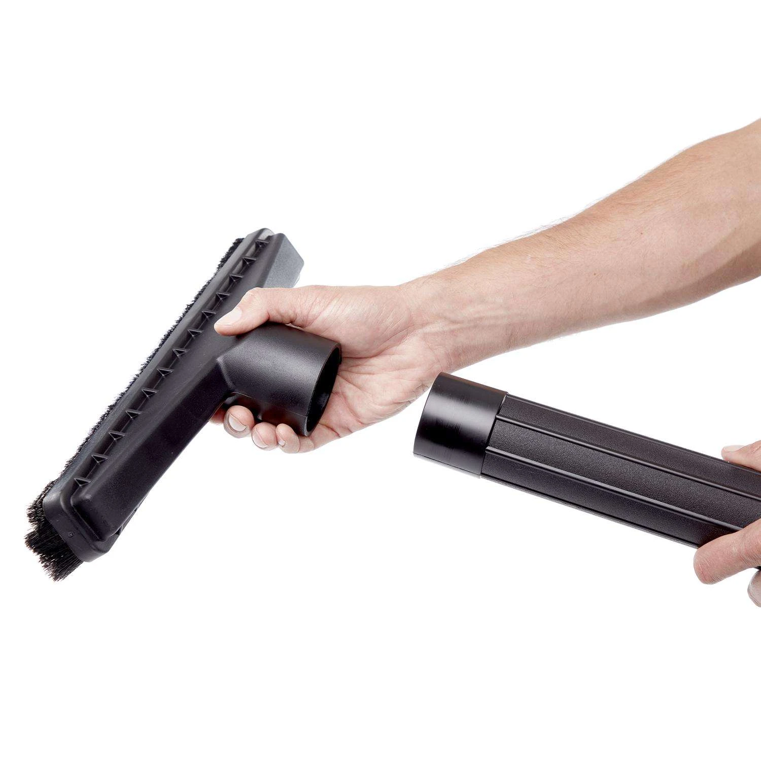 Clean up a variety of surfaces in your home with the CRAFTSMAN 2-1/2 in. Home Essentials Accessory Kit, making it your go-to for everyday messes. This four-piece shop vac accessory kit comes with a floor brush, wet floor nozzle, crevice tool, and a dusting brush to conveniently give you what you need to clean up your car’s interior or home. Interchange and attach each accessory to your CRAFTSMAN wet/dry shop vacuum’s hose or extension wands and clean hard surfaces, wet messes, countertops, shelves, and hard-to-reach places. Use the floor brush to clean up large areas of dust, dirt, food particles, saw dust, and other debris from hard surfaces, and the wet floor nozzle to clean up wet messes. The dusting brush has bristle ends to help loosen stubborn dirt and debris in such places such as cupholders, work benches and furniture. Plus, take your dusting brush outside to clean up soil around your potted plants, grass clippings, or leaves. The crevice tool is ideal for hard-to-reach places like in-between your furniture cushions, along staircases, door frames, trim, and cluttered workspaces such as workshop tables, garages, and basements. The Home Essentials Accessory Kit is compatible with vacuums that have a 2-1/2 in. diameter size. The kit is also available in 1-7/8 in. sizes (CMXZVBE38803; sold separately) for smaller shop vacs. Add the Flexible Crevice Tool (CMXZVBE38786; sold separately) to your accessory lineup for cleaning of hard-to-reach, awkward spaces.DISCLAIMER: To reduce the risk of injury, user must read vacuum instruction manual before using product *HOMEOWNERS: A perfect kit for a homeowner during a multitude of stages of homeownership, whether you’re buying your first home or are a long term owner, you’ll be able to find a use for this kit *USED FOR: Use the floor brush for cleaning hard surfaces, the wet nozzle for wet pickups, the crevice tool in hard-to-reach spaces, and the dusting brush on surfaces such as countertops, workbenches, and furniture *VERSATILITY: Use this all-in-one kit for various surfaces in your house, in your home, garage, basement, or workshop *FLOOR BRUSH WITH TWO BRISTLE SIZES: Two bristle sizes to make clean-up more efficient; one side of brush has 3/8 in. bristles, and the other side has 5/8 in. bristles *WET NOZZLE IDEAL FOR HARD SURFACES: Rubber squeegee provides a thorough clean on hard floors *CREVICE TOOL IDEAL FOR TIGHT AREAS: Reaches into slim, narrow areas where your hose can’t reach *DUSTING BRUSH PERFECT FOR STUBBORN DEBRIS: Captures wood chips, metal shavings, dust and other small particles *INCLUDES: (1) Floor Brush, (1) Wet Floor Nozzle, (1) Crevice Tool, (1) Dusting Brush *FITS: CRAFTSMAN and most shop vacuums that use a 2-1/2 in. diameter hose *