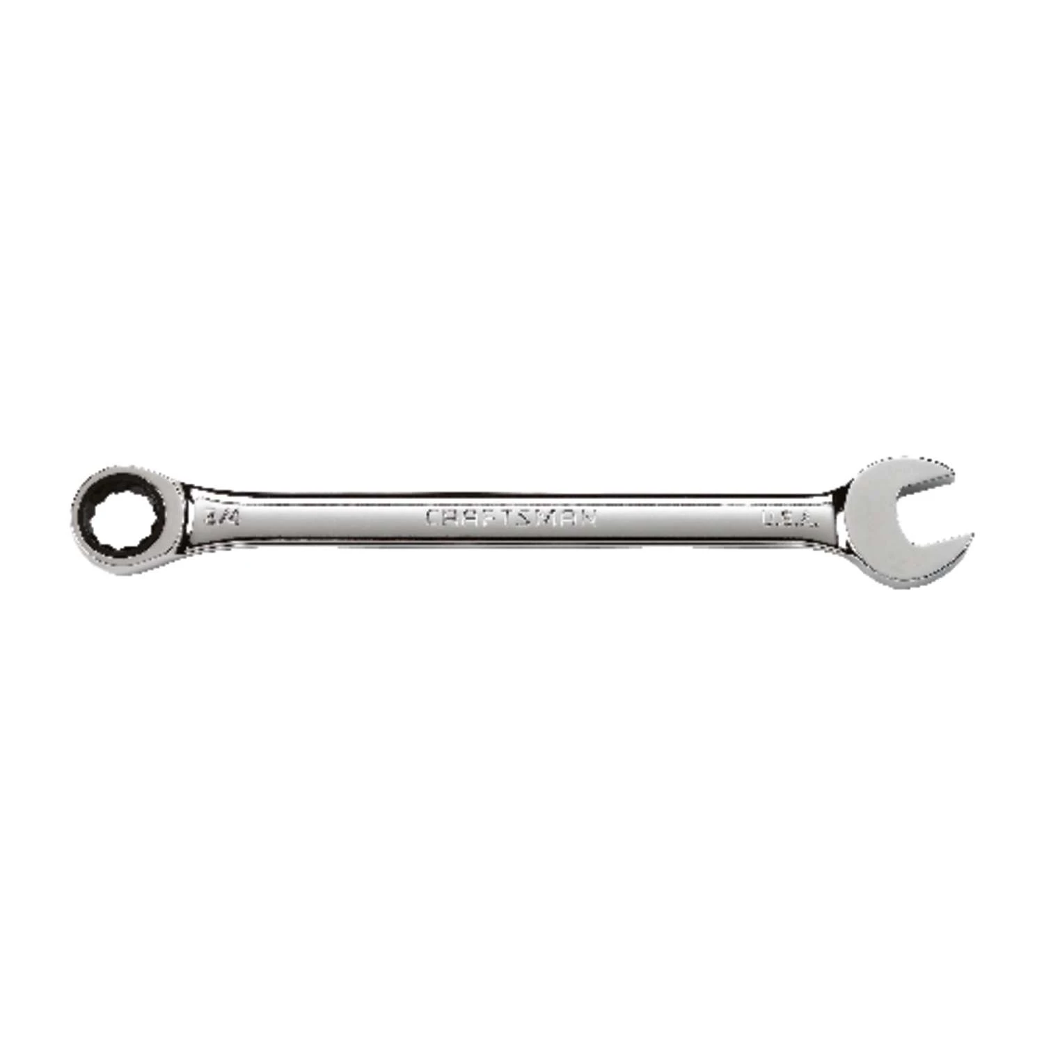 3/4-in. 72-tooth 12 point SAE ratcheting wrench has a corrosion resistant chrome finish providing extra wear and tear coverage while adding hardness and durability allowing your wrench to last longer. Craftsman wrenches meet or exceed ASME specifications.Quick engagement – 12 point box end for quick engagement with fastenerAccess to tight spaces – 72-tooth ratcheting box end for access in tight spacesEasy identification – large markings for quick combination wrench identificationKnuckle clearance: 15 degree box end offset for additional knuckle clearanceFull polish finish provides for easy clean up