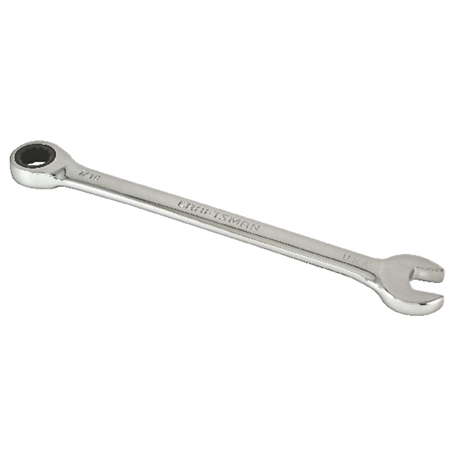 7/16-in. 72-Tooth 12 Point SAE Ratcheting Wrench has a corrosion resistant chrome finish providing extra wear and tear coverage while adding hardness and durability allowing your wrench to last longer. Craftsman wrenches meet or exceed ASME specifications.Chrome finish for corrosion resistance15° box end offset for additional knuckle clearanceLarge markings for quick combination wrench identificationMeets or exceeds ASME specifications