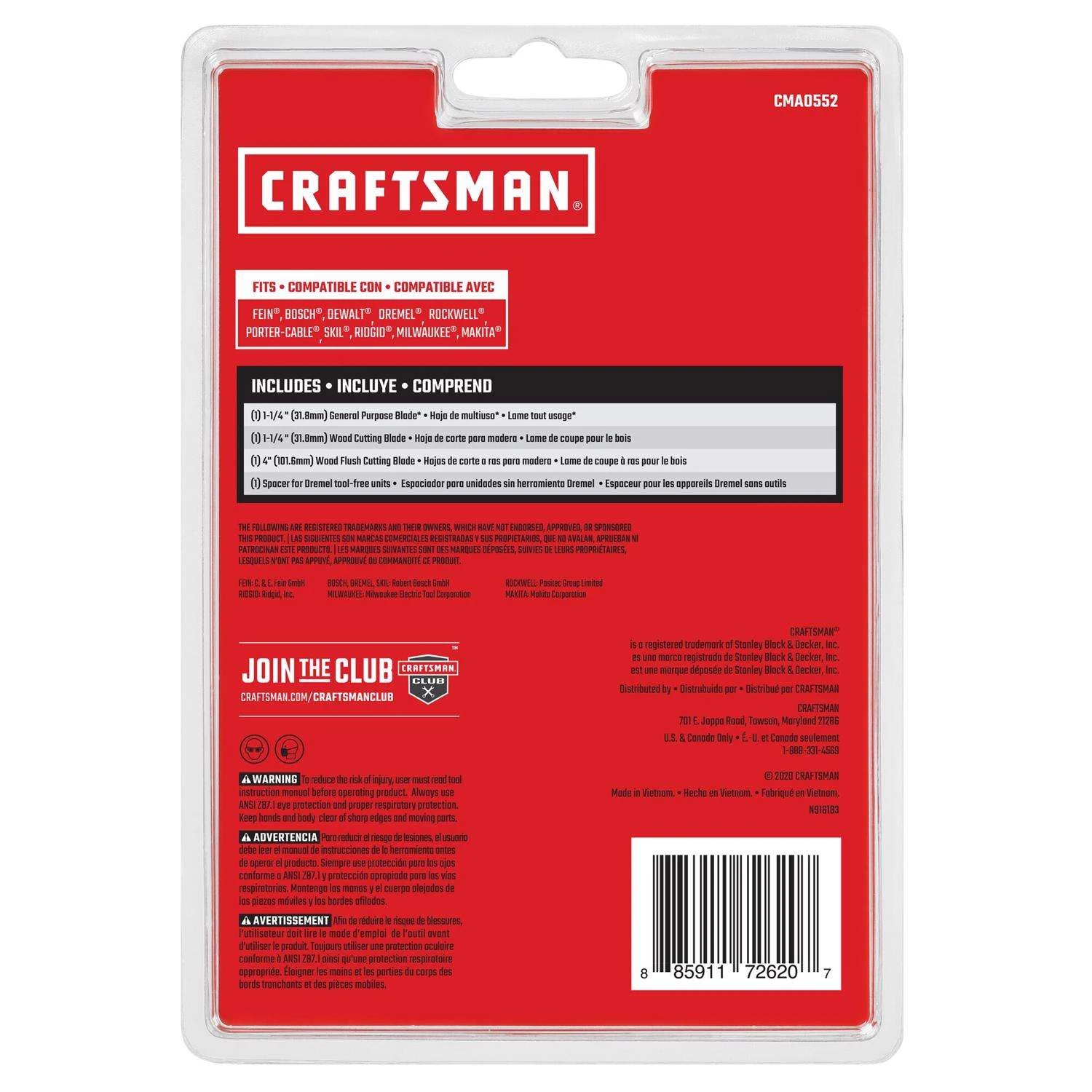 Craftsman oscillating blades are optimized to cut through wood, drywall, wood with nails, and metal. Universal fitment design allows for quick, tool-free blade change.Tapered blade shape for removing chips and maneuverability while cuttingHigh quality materialLong lasting