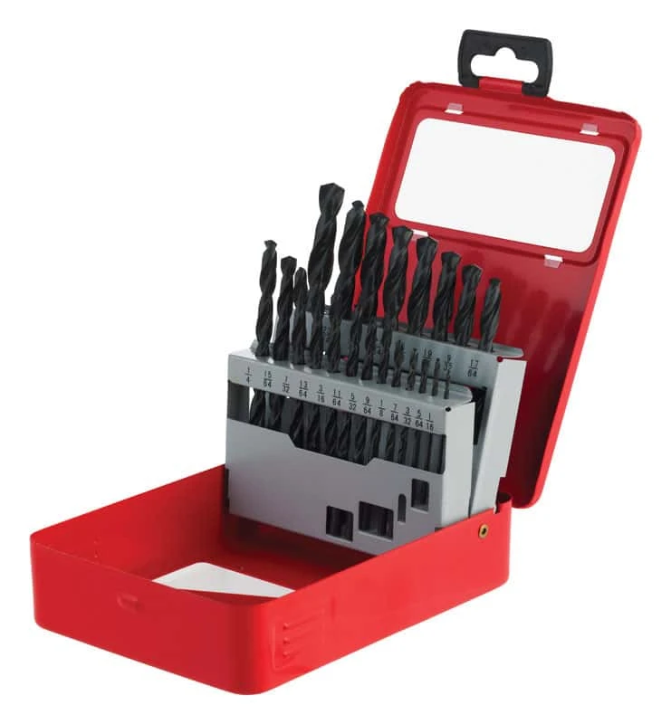 | What's Included | Standard twist bit sizes 1/16, 5/64, 3/32, 7/64, 1/8, 9/64, 5/32, 11/64, 3/16, 13/64, 7/32, 15/64, 1/4, 17/64, 9/32, 19/64, 5/16, 21/64, 11/32, 23/64 and 3/8 inch |