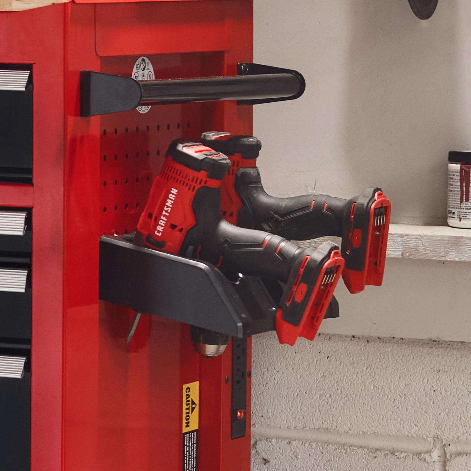 Look forward to tackling drilling jobs with this handy drill holster by your side. Designed to make your job easier, this holster offers you a place to set your drill when you’re partially or completely done using it. It seamlessly goes into any pegboard on the side of your cabinet, back of your chest or wherever your closest pegboard is. The versatile drill holster comes in a pack of 2 and conveniently fits any standard drill.Keep your workspace organized, holster provides quick organization for power tools outside drawersHigh accessibility, easily attach to metal storage cabinetFits standard drills for a simple power tool storage solution