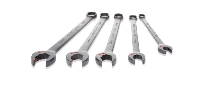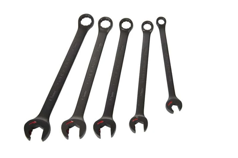 Craftsman 5-piece full polish large combination wrench set in choice of SAE or metric helps you get the job done. Built from tough alloyed steel and featuring a reinforced open end coupled with the adaptation of a 12 point box end, this wrench set combines flexibility and serious torque strength. No matter what the job, you can get it done. Equipped with a smooth finish, each piece wipes clean easily after even the messiest jobs, while clearly marked sizes help you get to the right tool in a jiffy. While the 12-point box end reduces the swing necessary to turn nuts and bolts in tight places, every wrench in these sets feature a 15 degree offset that gives your knuckles more clearance with every turn. Built ready to work, it contains the most common large size wrenches and comes in a pre-organized tool case that’s always prepared.Full polish finish wipes clean easilyCombination design delivers speed and grip12 point box end minimizes swing for tight areasOffset box end provides for knuckle clearance to help prevent scrapingRugged alloyed steel build is torque ready