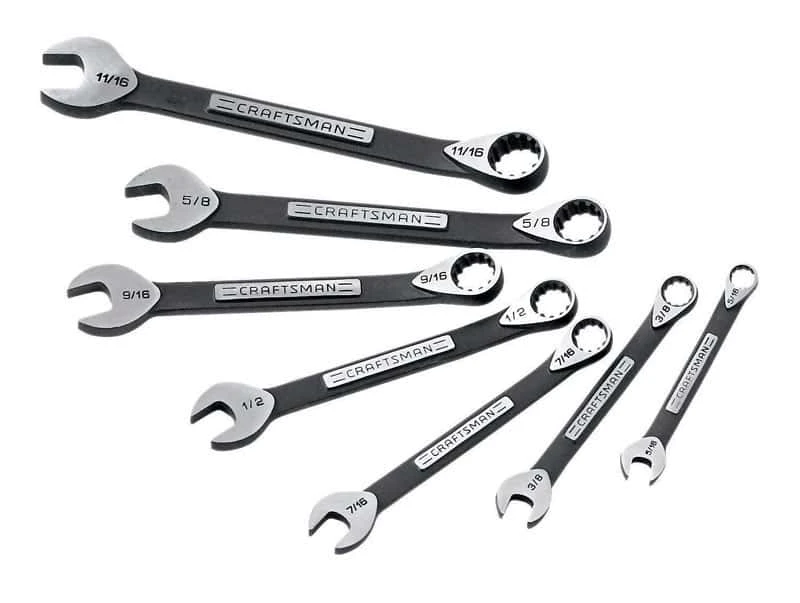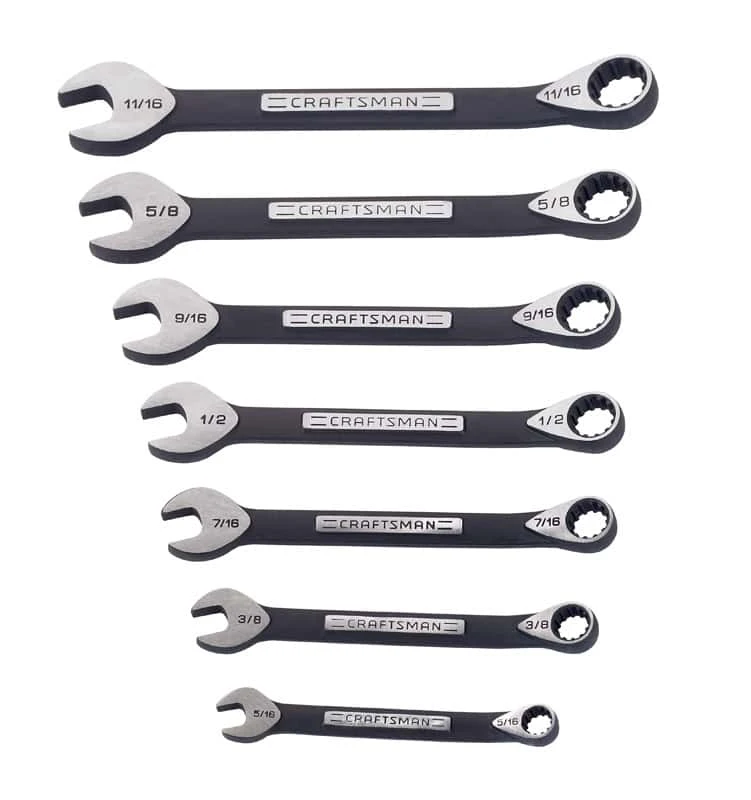 Craftsman 7-piece universal wrench sets come in handy for all sorts of projects around the house and on a job site. Each wrench has a universal tooth design that can grip six different nut and bolt sizes. With their 15 degree angled wrench heads, you have ample space to get into tight spots and work stubborn nuts and bolts loose without worrying about scraping your knuckles. The wrenches also have reinforced open ends to decrease tip spreading and fastener rounding in heavy pressure situations. Craftsman wrench sets boast a rounded, thick wrench beam to ensure a comfortable, strong grip. Each wrench has a high contrast marking that makes it easy to spot the right size when you need it.Tough alloyed steel construction is built to last.Universal tooth design grips six different types of nuts and bolts: hex 6 pt., square 4 pt., hex 12 pt., external torx, spline and partially rounded hex 6 pt.Rugged open end delivers tons of torque and grabs bolts fast.Clear markings make the right wrench easy to findSizes include 5/16 in., 3/8 in., 7/16 in., 1/2 in., 9/16 in., 5/8 in. and 11/16 in.
