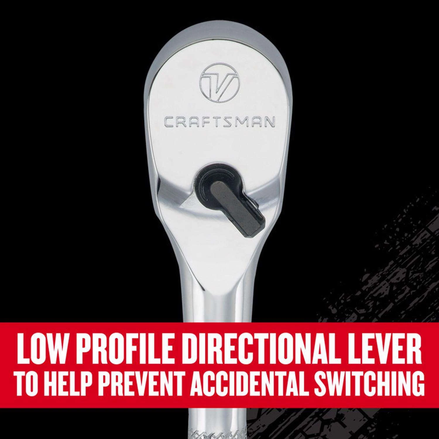 Tackle demanding projects with this V-Series™ 3/8 in. Drive Ratchet. This ratchet blends pro-grade performance and expert-tested endurance with a precision-engineered gear for optimized usability. Access confined work areas without losing grip strength with the 96-tooth design along with its short 3-3/4 arc swing. This tool was designed to minimize accidental switching for enhanced productivity with its low-profile directional lever.ACCESS CONFINED SPACES with 3-3/4 deg arc swingPREVENT UNINTENTIONAL SWITCHING with low-profile steering leverBUILT FOR STRENGTH AND DURABILITY with precision-engineered gearPREVENTS DAMAGE FROM DIRT infiltration with enclosed head designBACKED BY A LIFETIME WARRANTY: Designed to deliver the quality and durability expected from the CRAFTSMAN brand – if the product fails to perform, we’ll replace it