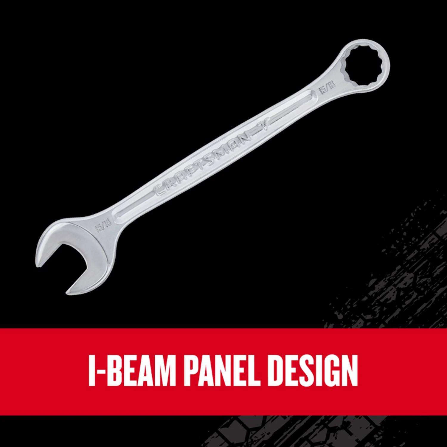 Built for performance, the V-Series™ SAE Combination Wrench Set (12 pc.) is the expert’s choice when it comes to tackling a wide range of applications. Access fasteners even in recessed positions with this wrench set, which features an extended box end design and wrench forging for enhanced utility. Easily maneuver and control these wrenches without sacrificing strength with their lightweight, I-beam handles. Confidently take on jobs that require frequent work in tight spaces without damaging fasteners in high torque applications with these wrenches’ low profile design. Made with the user in mind, the vertical wrench rack fits into most metal storage drawers to provide an organized method of storing when all work is done.GRIP RECESSED FASTENERS with extended offsetQUICK FASTENER ENGAGEMENT with 12-point box end designHIGH DURABILITY FOR LONG LIFE: Full-polish chrome helps resist rust and corrosionBACKED BY A LIFETIME WARRANTY: Designed to deliver the quality and durability expected from the CRAFTSMAN brand – if the product fails to perform, we’ll replace it