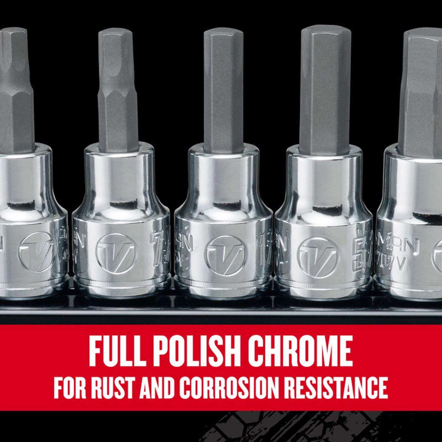 | What's Included | (6) 3/8 in. Drive SAE Hex Sockets – 5/32 in., 3/16 in., 7/32 in., 1/4 in., 5/16 in., 3/8 in., and a 6 in. Black Rail with 6 Nubs |